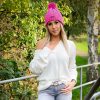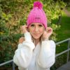 Beanie in Rosa/Pink mit Zopfstruktur und Bommel