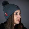 Beanie in Grau mit Bommel
